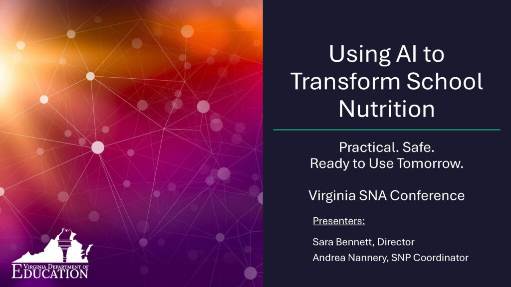 We are working hard to expand our professional development and educational offerings by highlighting opportunities with our allied partners and developing programs to support school nutrition professionals across Virginia. Check back often for updates and new additions. If you know of an educational opportunity or training that may benefit our members, we’d love to hear from you! Please share it with us at info@sna-va.org.